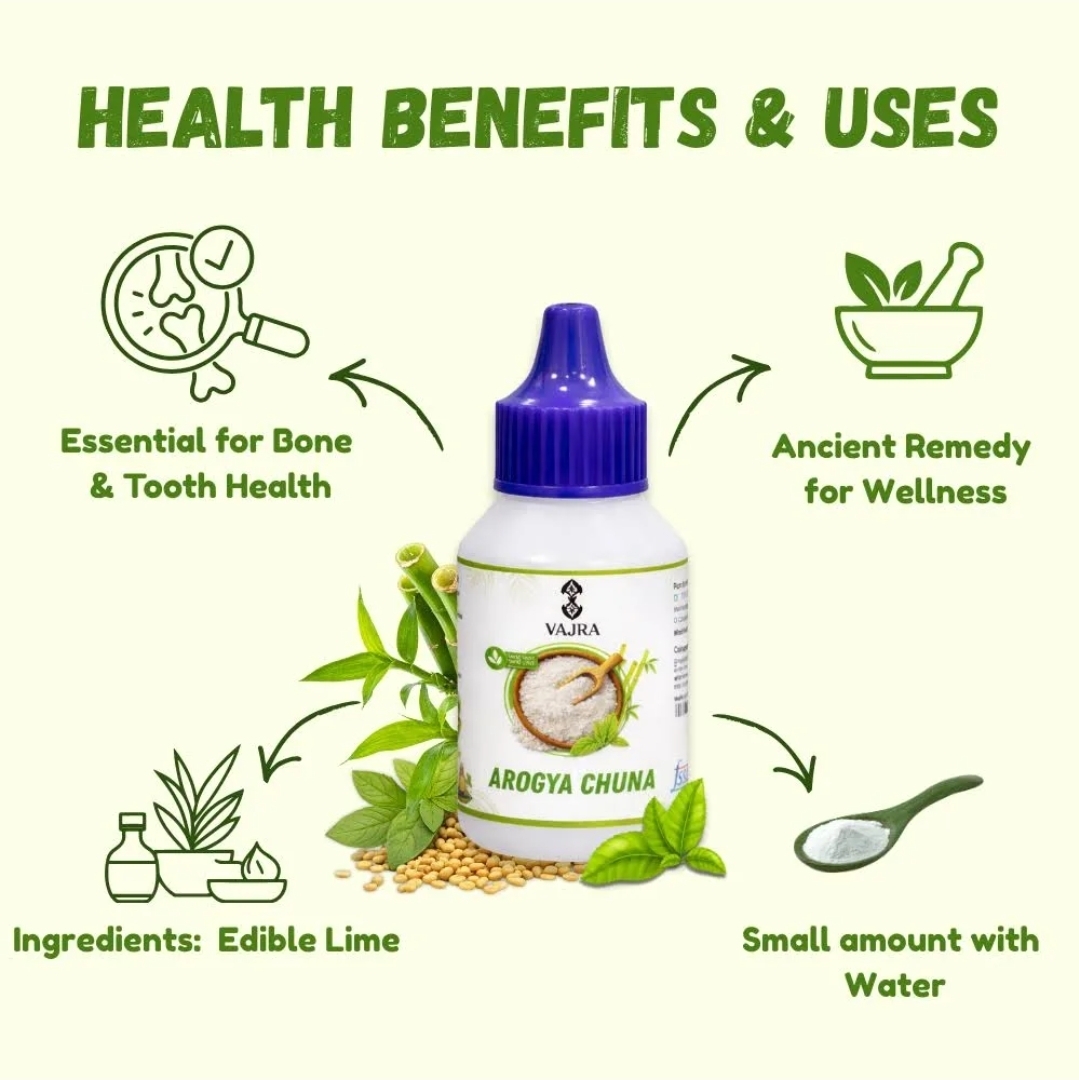 Packed hygienically, Arogya Chuna maintains consistent texture and quality. It is intended strictly for culinary and traditional household use, following customary practices. The product comes in a secure pack to ensure ease of storage and handling.