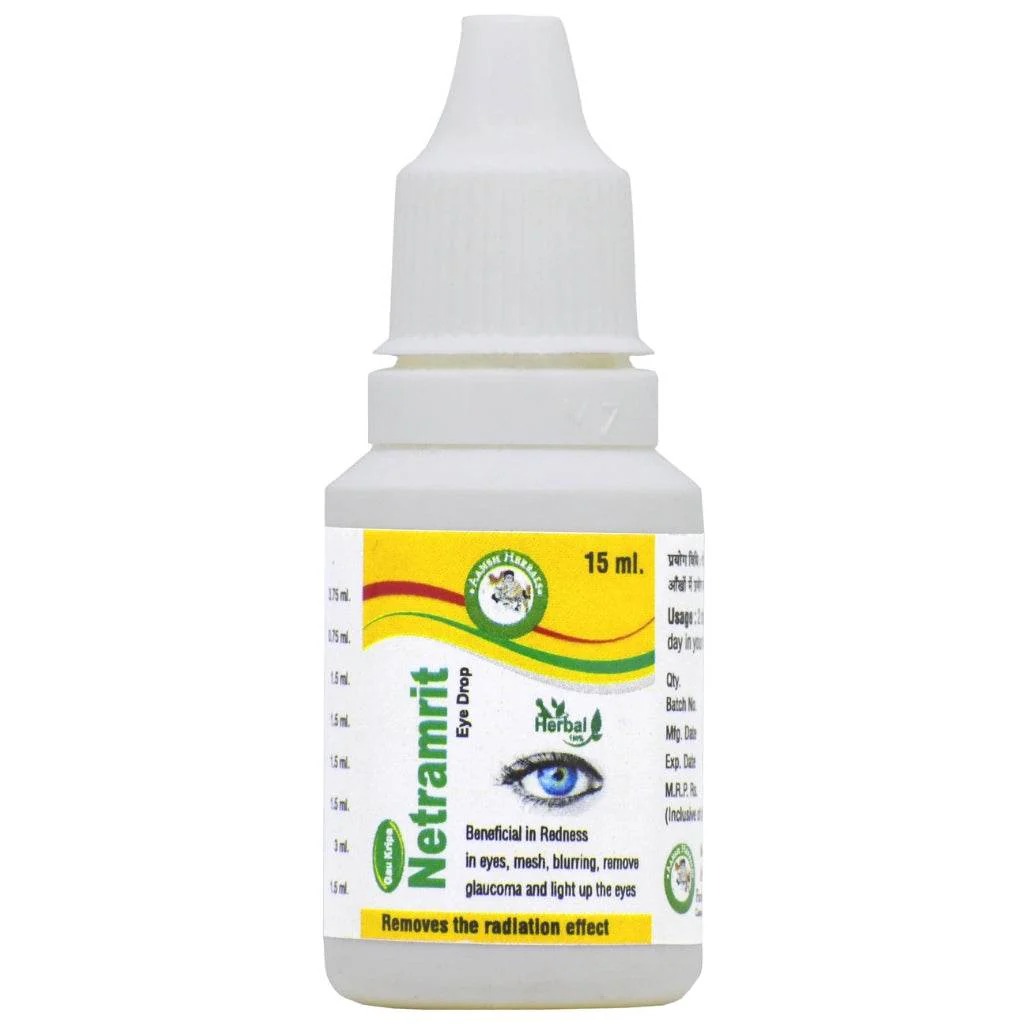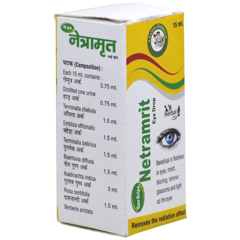 Netra Amrit Eye Drop by Aansh Herbals effectively treats eyelid abscesses, and eye dryness, and helps in in improving vision with regular use and recommended eye exercises. It is a unique herbal formulation without any added preservatives. The base of this eye drop is distilled cow urine or Gomutra ark which is a natural anti-microbial.