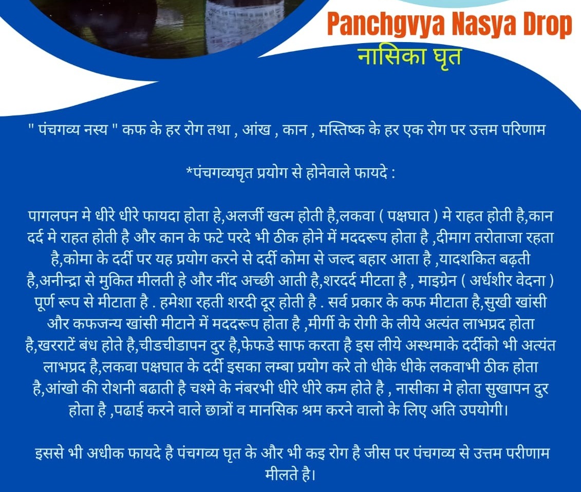 " पंचगव्य नस्य " कफ के हर रोग तथा , आंख , कान , मस्तिष्क के हर एक रोग पर उत्तम परिणाम मील रहे है .
