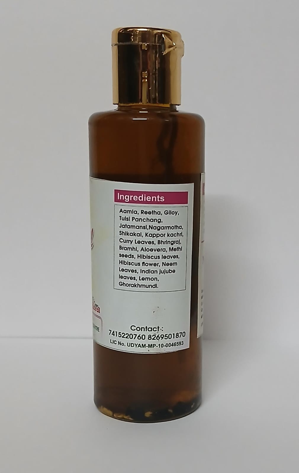 The hair oil manufactured by Sri Omkara go Vigyan and Research Centre with natural herbs leaves and oils